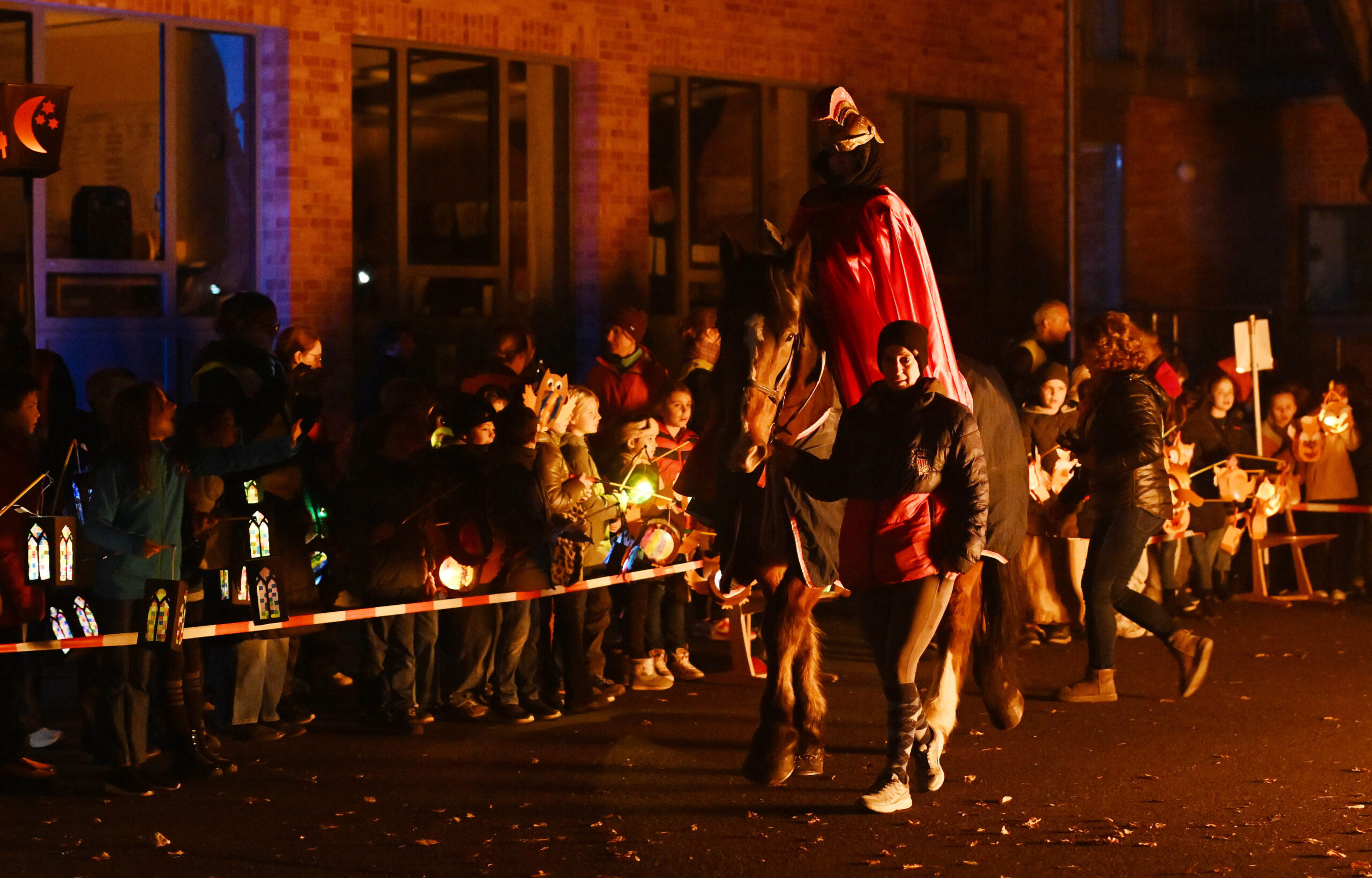 Ein Fest für die Sinne Im Mittelpunkt des Umzugs stand natürlich der heilige Martin, hoch zu Ross auf einem echten Pferd. Begleitet von den Klängen der Martinslieder und dem Schein der bunten Laternen, wurde die Geschichte von St. Martin und dem Bettler lebendig. Besonders berührend war der Moment, als ein echter Bettler die Szene nachstellte und die Kinder die Bedeutung von Teilen und Helfen hautnah erlebten.